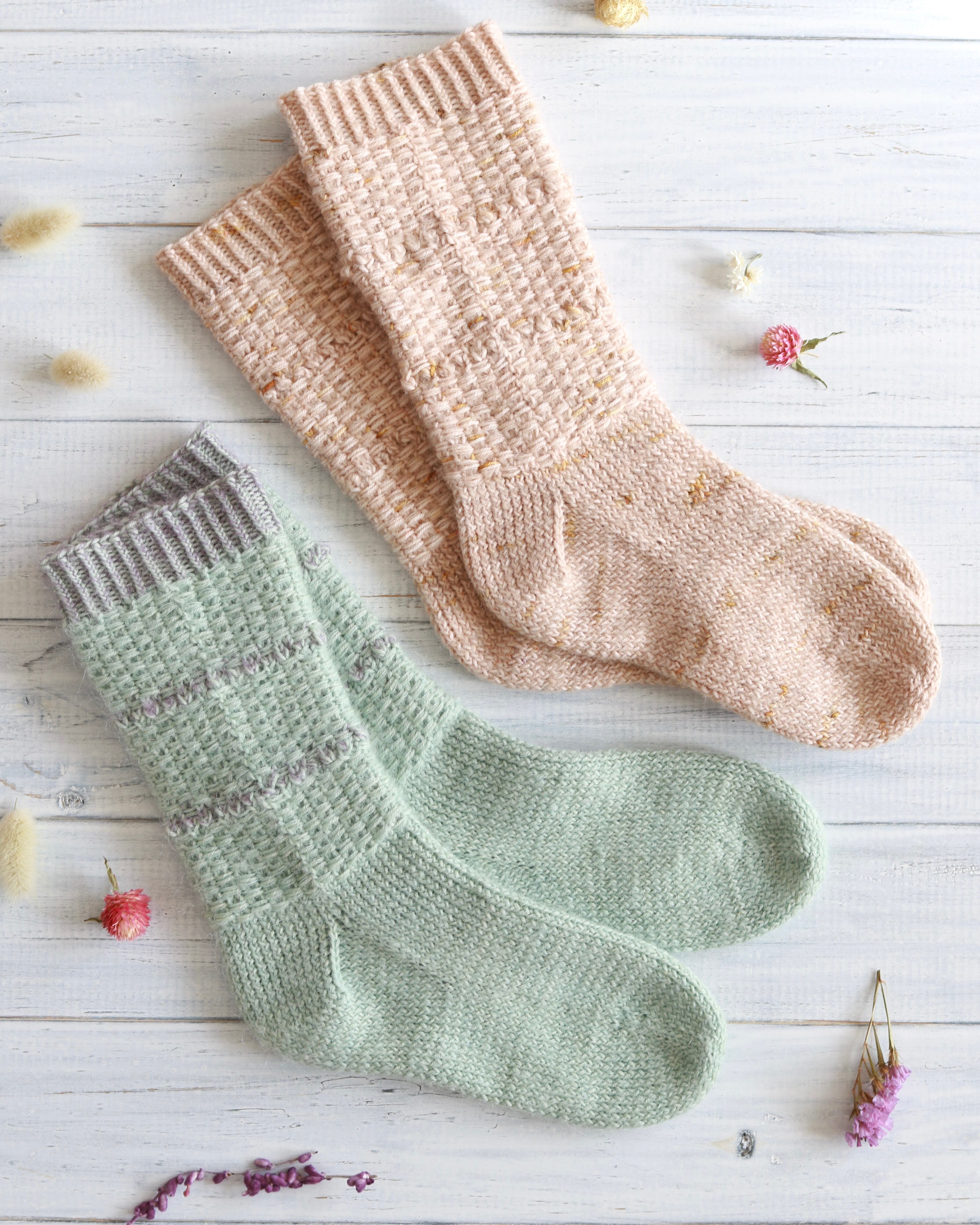 Snowy Straw Socks Set を編んでくださりありがとうございます!完成した作品をぜひSNSやRavelryでシェアしてくださいね.